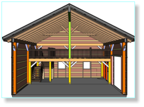 This is a basic list of material for a timber frame barn kit. This list may be adjusted for your specific project.  	Post and Beam Manual 	8” x 8” Post 	8” x 12” Headers 	8” x 12” Girders 	8” x 10” / 6” x 8” Collar Ties 	6” x 6” Sling Braces 	6” x 6” Wall Struts 	8” x 10” / 8” x 12” Ridge Beam 	4” x 8” / 6” x 10” Rafters 	2” x 6” Wall Girts 	4” x 12” Stair Stringer 	4” x 12” Stair Treads 	¾” x 5” Oak Window/Door Trim 	4” x 8” / 4” x 10” Floor Joist (2nd floor)   	8” x 8’ Porch Post 	8” x 10” Porch Headers 	4” x 8” Porch Rafters 	2” x 10” Fascia 	¾” x 5” Oak Ship lap Ceiling 	¾” x 8” Oak Boards 	¾” X 2” Battens 	2” x 6” Spindles 	6” x 6” Railing Post 	¾” x 3” Oak Trim 	¾” x 2” Oak Trim 	¾” x 5” Oak Trim What’s Included