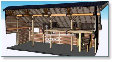 The Hawthorn Timber frame barn is 34’ x 48’’. This barn ia a timber framed horse barn style kit. This barn can built in any size and comes with a partial second floor. The Oak board and batten siding and Oak interior siding and shiplap ceilings give is barn an old school feel. This barn would make a great venue, home, or whatever your imagination can think up.