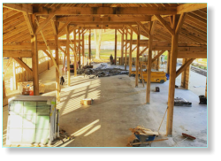 Each timber frame barn kit includes:      •	Post •	Built up truss material •	Roof purloins •	Wall girts •	Window and door framing lumber •	Window and door trim •	Fascia  •	Board and batten siding •	Interior siding •	Roof purloins •	Ceiling ship-lapThis is a basic list of material for a timber frame barn kit. This list may be adjusted for your specific project.        •	Ridge Beam •	Sling Braces •	Second floor Joists •	Girder beams •	King pins •	Stair stringers •	Stair treads •	Railing •	Spindles •	Detailed building manual