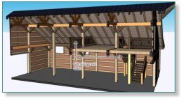 The Hawthorn Timber frame barn is 34’ x 48’’. This barn ia a timber framed horse barn style kit. This barn can built in any size and comes with a partial second floor. The Oak board and batten siding and Oak interior siding and shiplap ceilings give is barn an old school feel. This barn would make a great venue, home, or whatever your imagination can think up.
