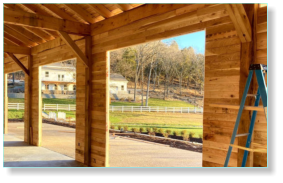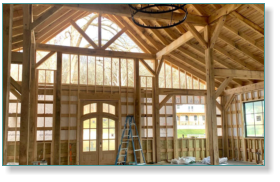 The Meadow Timber frame barn is 48’ x 110’. This barn is a Traditional style barn kit. This barn can built in any size and comes with space to add a second floor or loft area. The Oak board and batten siding, Oak interior siding and shiplap ceilings give is barn an old school feel. This barn would make a great venue, home, or whatever your imagination can think up.